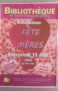 - 13 Mai : animation à la bibliothèque pour la fête des mères