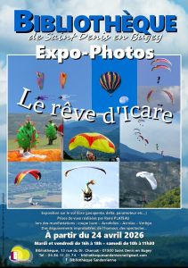 - 24 avril : exposition à la bibliothèque : “Le rêve d’Icare”